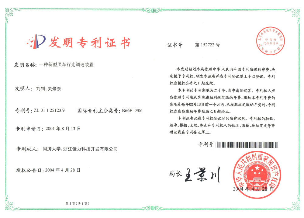 發(fā)明專利(一種新型叉車行走調(diào)速裝置)
