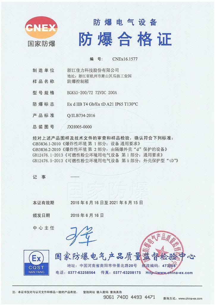 防爆證書>>詳細信息