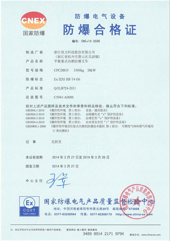 CPCDB35平衡重式內燃防爆叉車 氣體證書