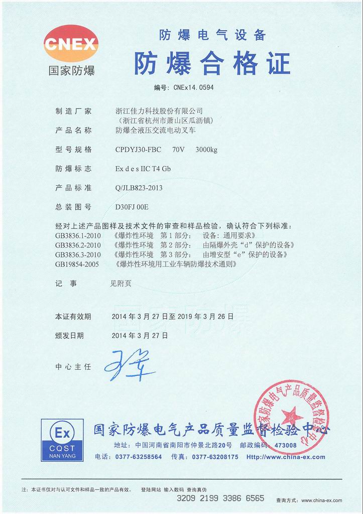 CPDYJ30-FBC 防爆全液壓電動叉車 IIC氣體證書