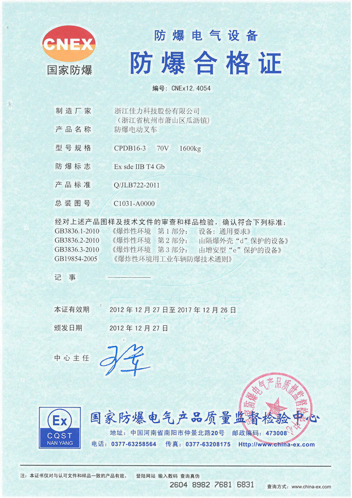 1-1.6T 三支點電動防爆叉車>>詳細信息
